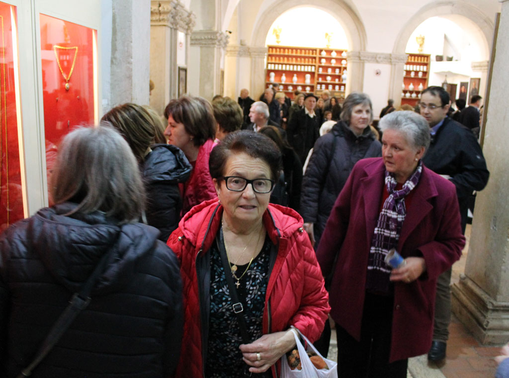 Prvoga dana boravka u Dubrovniku, 2. veljače - kalendarski na blagdan Prikazanja Gospodinova – Svijećnica/Kalendora, hodočasnici su po dolasku sudjelovali na svetom misnom slavlju u crkvi Male braće u Starom gradu. Nakon sv. mise franjevci su ih pozvali da posjete njihov samostanski kompleks povjesno starim oko 700 godina: u crkvi, među ostalim, mogli su vidjeti oltarnu sliku Celestina Medovićai posljednje počivališteIvana Gundulića; ljekarna Male braće jedna je od atrakcija po kojima je Dubrovnik poznat širom svijeta. Mnogi samostani poznati su po ugodnim klaustarima, a dubrovačka Mala braća imaju jedan od najljepših u Hrvatskoj koji je izgrađen u romaničko-gotičkom stilu. Četverokutni prostor okružuju prekrasni trijemovi, a tu je i mala česma iz 15. stoljeća. Bogati samostanski muzej, osim knjižne i arhivske građe, poznat je po brojnim izlošcima iz ljekarne, od kojih neki potječu s njenih početaka - iz 14. stoljeća. Prema legendi, Dubrovnik je na proputovanju u Svetu Zemlju, početkom 13. stoljeća, posjetio Franjo Asiški, te od tada franjevci djeluju u Dubrovniku.