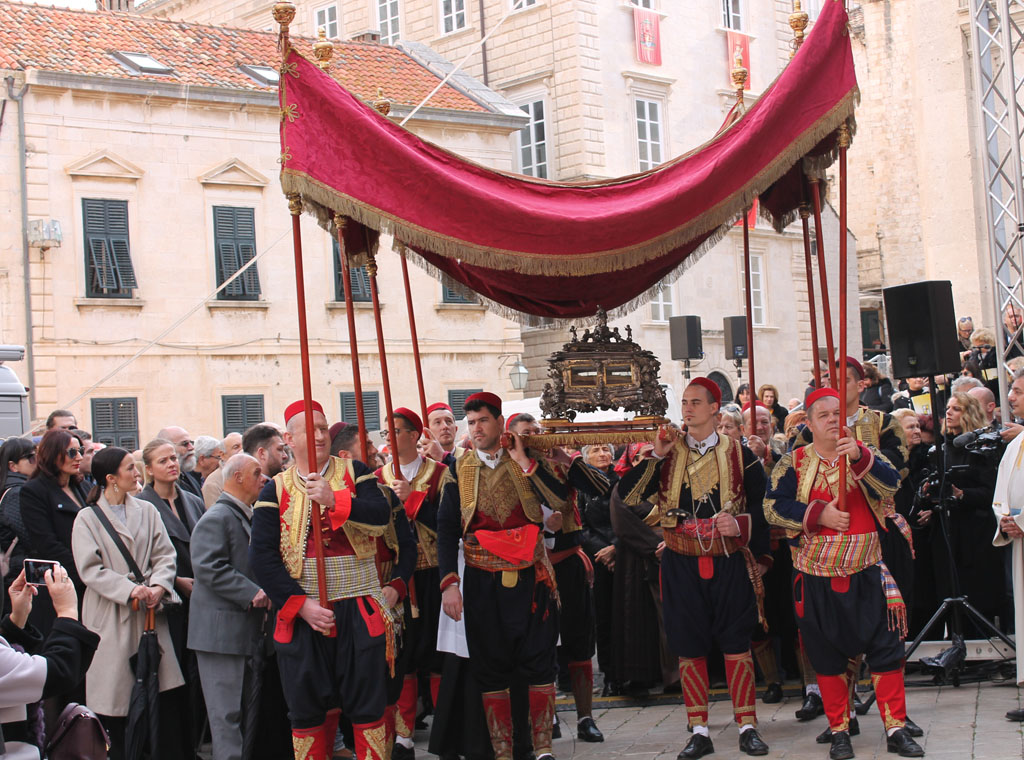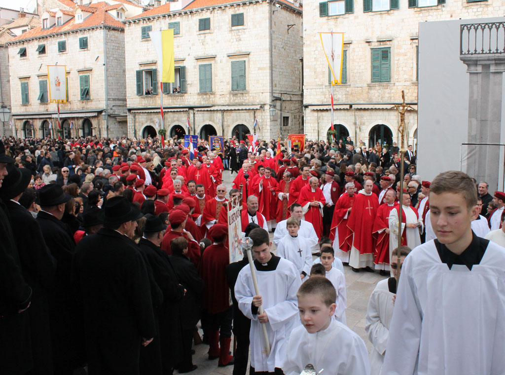 Po završetku mise bila je veličanstvena i uvijek dojmljiva procecija ulicama Grada: puk u živopisnim narodnim nošnjama iz cijelog dubrovačkog kraja, iz ostalih dijelova Hrvatske i susjednih zemalja gdje žive Hrvati te Dubrovčani sa svih strana svijeta, glazba, trombunjeri, prvopričesnici u bijelim haljinama, barjaktari, festanjuli, redovnici i redovnice, svećenici, biskupi sa svečevim relikvijama, pjesma crkvenih zborova i vjerničkog puka koja dostojanstveno i svečano odjekuje ulicama Grada. Procesija je završila blagoslovom puka.