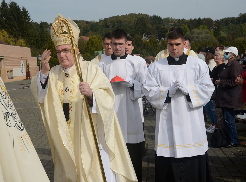 Pozdravljajući na početku slavlja okupljene, kard. Bozanić je kazao kako se u ovom slavlju slavi poseban obred, podsjetivši kako je na ovaj nadnevak prije 22 godine na istom mjestu bilo također posebno slavlje koje je povezano s Presvetom Bogorodicom Marijom, svetim papom Ivanom Pavlom II. i bl. Alojzijem Stepincem.