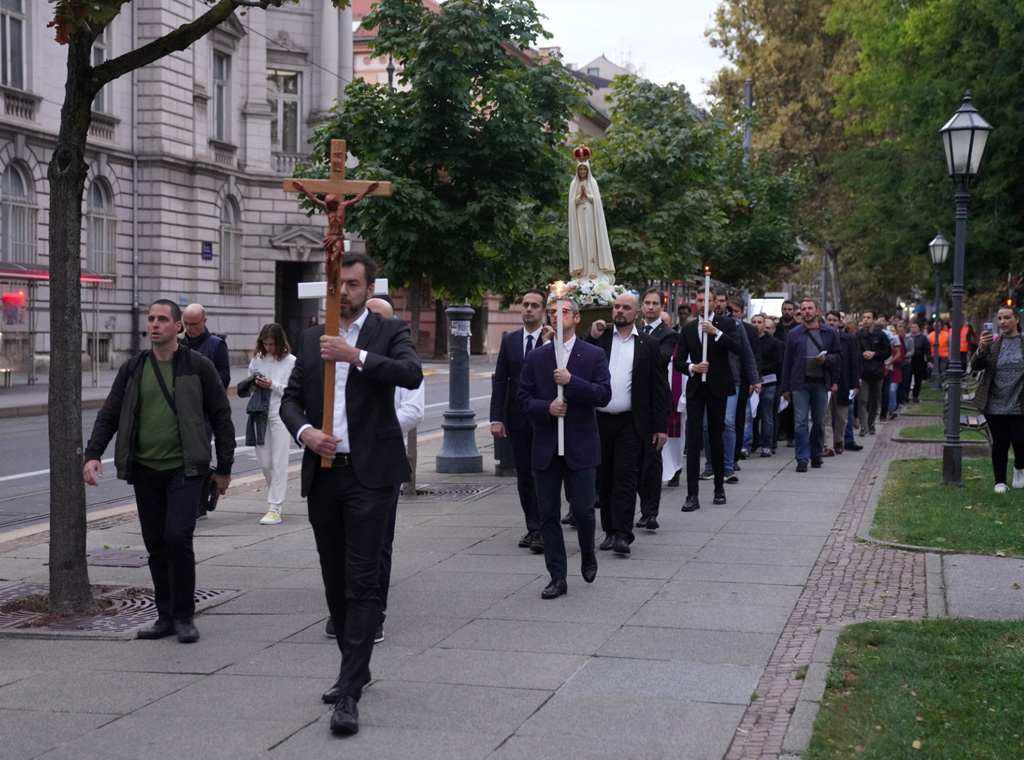 Nekoliko stotina sudionika okupilo se na Kamenitim vratima gdje ih je pozdravio predsjednik Udruge Hrvatska za Život Ante Čaljkušić. Tom prigodom rekao je da je ovogodišnja jesenska kampanja stavljena pod zaštitu Sv. Mihaela, uz Bezgrješno Srce Marijino koje i inače zaštitnik druge kampanje u godini koja traje do svetkovine Svih svetih. Procesiju s kipom Gospe Fatimske predvodio je o. Tvrtko Barun, SJ.