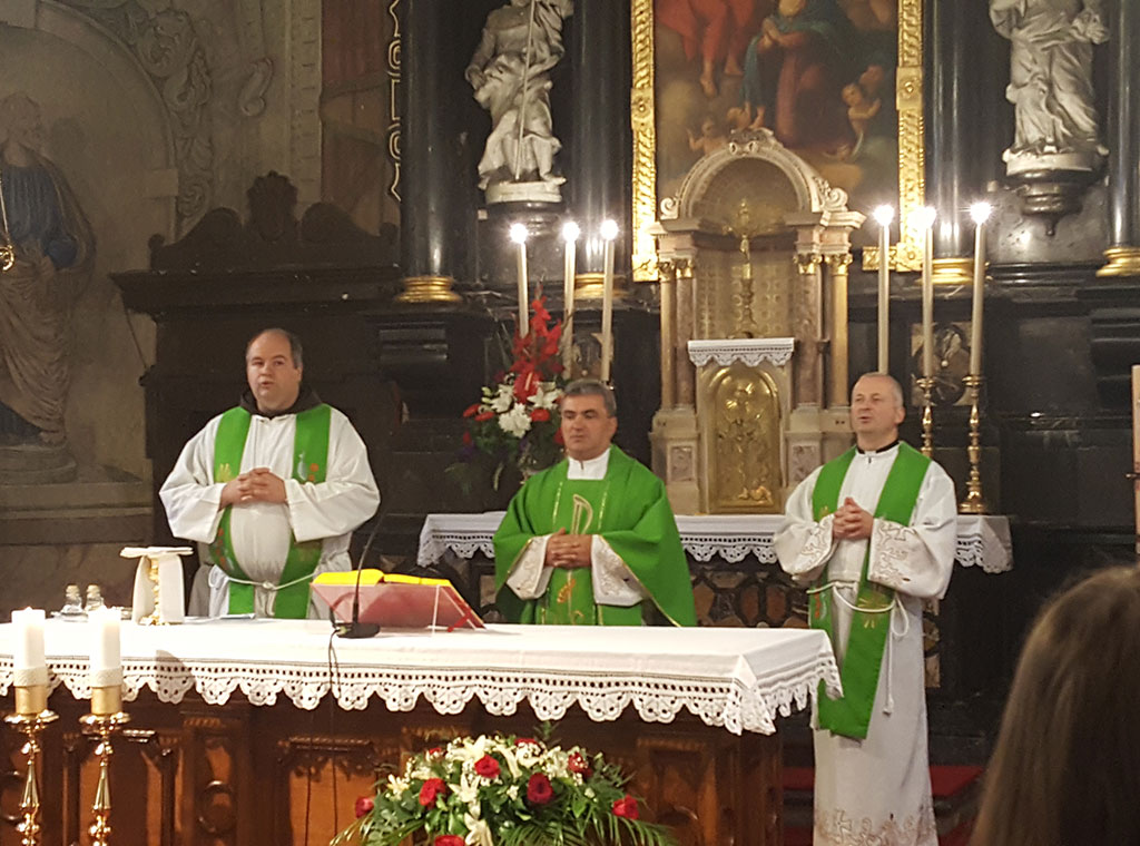 Na početku svete mise domaći župnik vlč. Ivan Vučak pozdravivši goste izrazio je radost što sa svojim župljanima može upoznati misijsko djelovanje u dalekim zemljama. Započevši bogoslužje, mons. Tunjić zahvalio je župniku na gostoprimstvu i pozvao vjernike da mole za evangelizaciju, da svi narodi upoznaju Krista, misionare i sve osobne nakane.