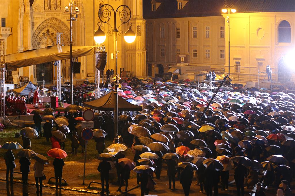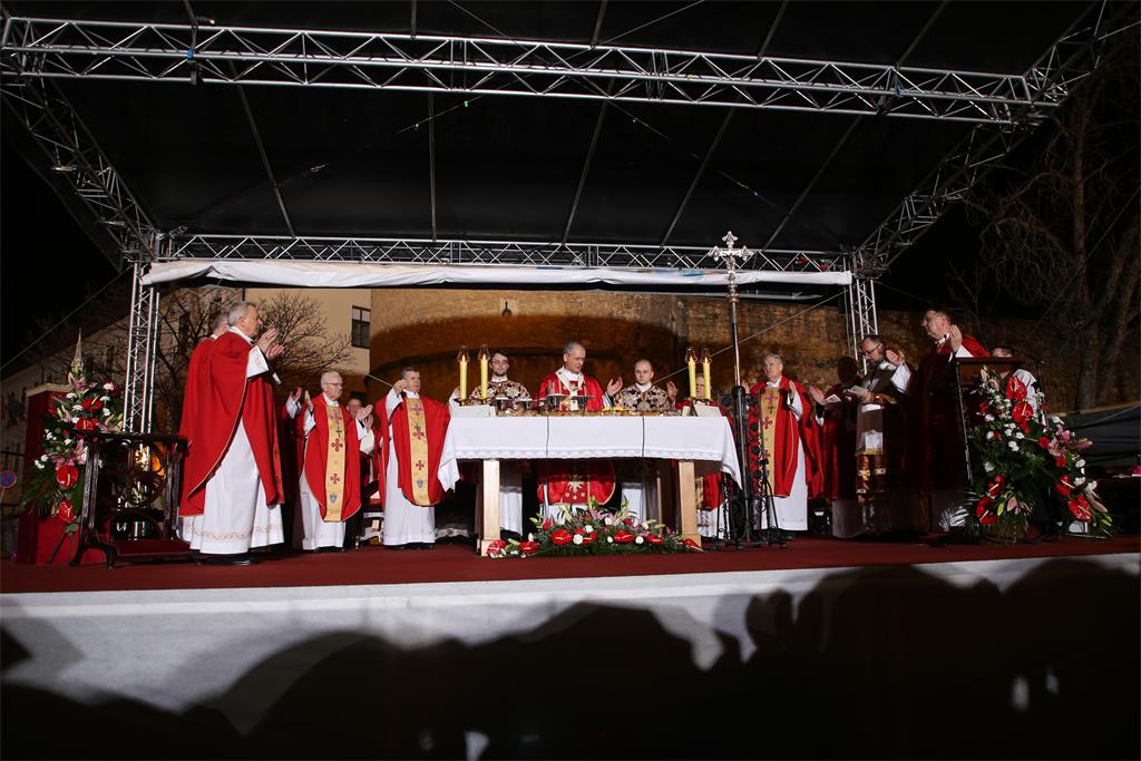 Zagrebački nadbiskup Dražen Kutleša predvodio je na blagdan Bl. Alojzija Stepinca u subotu 10. veljače svečano euharistijsko slavlje ispred potresom ranjene zagrebačke katedrale.