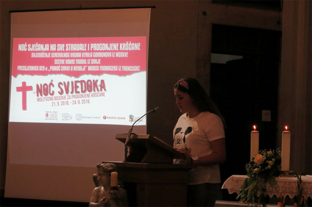 O mučeništvu svećenika, redovnika, redovnica i vjernika laika u raznim zemljama svijeta na početku programa govorilo je troje svjedoka: fra Kirill Gorbunov, generalni vikar iz Moskve, s. Houda Fadoul iz Sirije, i Marc Fromager, predsjednik francuskog ogranka Papinske zaklade Pomoć Crkvi u nevolji.