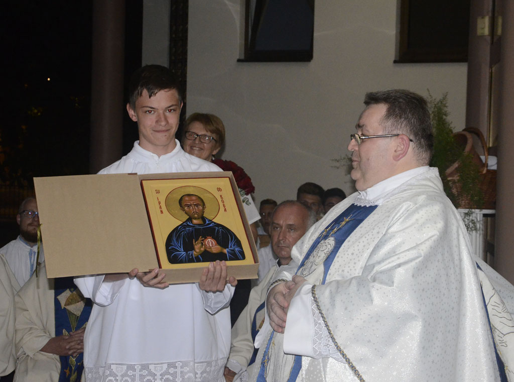 Uz prigodne darove cvijeće i ikonu Sv. Ivana od Boga, nebeskog zaštitnika župnika Ivana, u ime župljana pozdravnu riječ i zahvalu za toliko darovanog župljanima i gradu svom je župniku uputio Ivan Zekušić, član župnog vijeća, a u ime ženske pjevačke skupine Ad astra voditeljica Jasna Stajić.