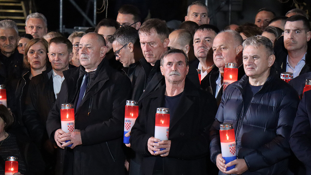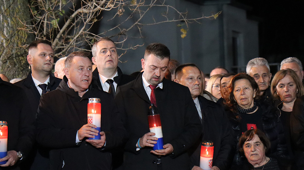 Uslijedile su, prenosi IKA, kratke litanije za pokojne i za istinske plodove mira, kao i molitva vjernika. Nakon završne molitve, sudionici su položili i zapalili svijeće kod središnjeg spomenika u dvorištu memorijalne bolnice. Klapa HRM Sveti Juraj prevodila je program pjesmama Krist na žalu i Oči u oči.