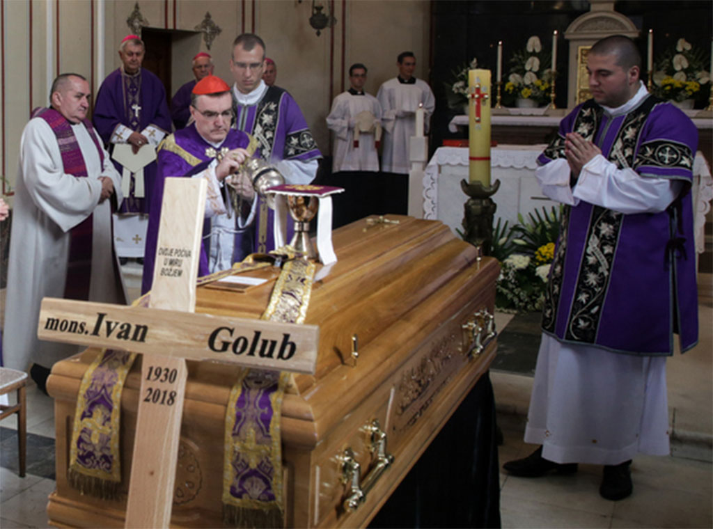 Zagrebački nadbiskup kardinal Josip Bozanić predvodio je 30. listopada u crkvi Krista Kralja na zagrebačkom Mirogoju sprovodnu misu i obrede za preminulog mons. Ivana Goluba.