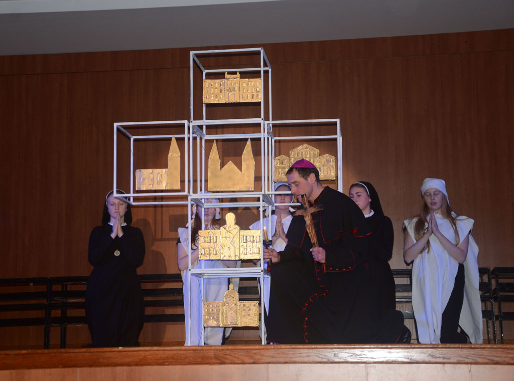 Svečani program nastavljen je u Glazbenoj školi, a vodila ga je s. M. Ljilja Marinčić. Nakon glazbene numere uslijedila je predstava simboličnoga naziva Stadler. Pod vodstvom redatelja i dramaturga Ante Bilića, a u produkciji sestara SMI Sarajevske provincije, izveli su je članovi Hrvatskog kazališta iz Travnika. Iako svi amateri osim glavnog glumca koji je glumio nadbiskupa Stadlera, mladi su vrlo vješto ovom moderno-koreografskom poetskom dramom, govorom, glazbom, scenografijom i kostimografijom, uprisutnili Stadlera iz njegovih dječačkih dana, a zatim i godina obnašanja službe pastira Crkve vrhbosanske. Prikazali su koliku je veliku snagu imala njegova vjera i pouzdanje u Gospodina, kako se nosio sa životnim križevima i izazovima, kako je živio, radio, gradio i surađivao.