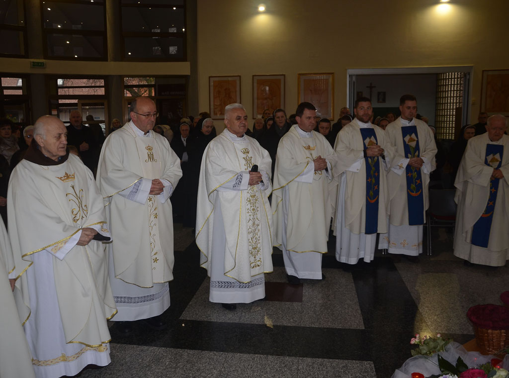 Slijedila je potom, uz pjesmu redovnica Služavki Maloga Isusa, procesija ulicama grada do Katehetskog centra župe Gospe Brze Pomoći gdje je euharistijsko slavlja predvodio postulator kauze za proglašenje blaženim sluge Božjega Josipa Stadlera mons. Pavo Jurišić. Uz župnika Cindoria i slavonskobrodskog dekana Tomislava Ćorluku suslavilo je još šest svećenika. Među brojnim vjernicima sudjelovalo je 70-ak sestara Služavki Maloga Isusa iz triju provincija: Sarajevske, Zagrebačke i Splitske sa svojim poglavaricama, a na čelu s vrhovnom glavaricom Družbe s. Marijom Banić.
