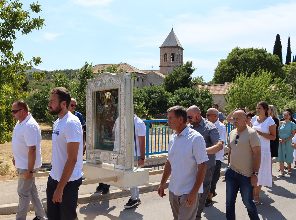Svečano misno slavlje u punom dvorištu samostana predvodio je profesor na Katoličkom bogoslovnom fakultetu u Splitu fra Šimun Bilokapić. U nazočnosti karinskog župnika fra Petra Klarića koncebriralo je 15-ak svećenika. Na početku je fra Šimun pred slikom Čudotvorne Gospe od Anđela, postavljenom ispred oltara, predmolio Gospine litanije, a potom se s Gosponom slikom išlo u procesiji do obližnjeg mosta i natrag, javlja zivazajednica.de.