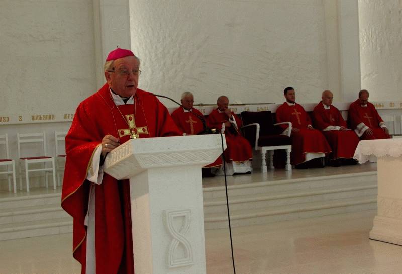 Pola tisućljeća nekadašnja katedrala Sv. Jakova bila je zapuštena i prekrivena trnjem i dračem, sve dok na njenim ostacima nije okupatorska voska ukopala moćno naoružanje. Nakon Domovinskog rata pronađeni su zidovi katedrale a kasnije su se od tog kamenja počeli postavljati novi temelji druge crkve u kojoj je sv. Jakov našao svoje dostojno mjesto i čime je nastavljena pobožnost ovog prostora, istaknuo je biskup Bogović. Govorio je zatim o liku sv. Jakova s naglaskom na njegovo mučeništvo i veličinu unatoč vlastitim slabostima. Herod ga je pogubio mačem, čime je posijana mučenička krv kao sjeme budućih kršćana. Ljudi kada su slabi onda su jaki, isticao je sv. Pavao. Bilo je u ovom svijetu brojnih carstava, društava i ustanova, no sva su propala. Na ovom mjestu nismo se prije osjećali ugodno niti po danu a sada ovdje imamo CHM, Memorijalni park i budući Svehrvatski grob. Tajna dugovječnosti Kristove Crkve leži u istini i nenasilju. Svako društvo u kojemu postoji pravo na laž, ugrađuje u sebe destrukciju i nasilje. To se može opipati u suvremenom društvu, ali se ono ne odriče ni jednoga ni drugoga. Jedini tko je bez laži i nasilja je Crkva, zaključio je biskup Bogović.