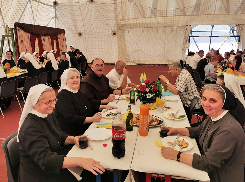 Uslijedilo je potom čestitanje sestrama, a slavlje je nastavljeno u obiteljskom ozračju u prostorijama samostana.