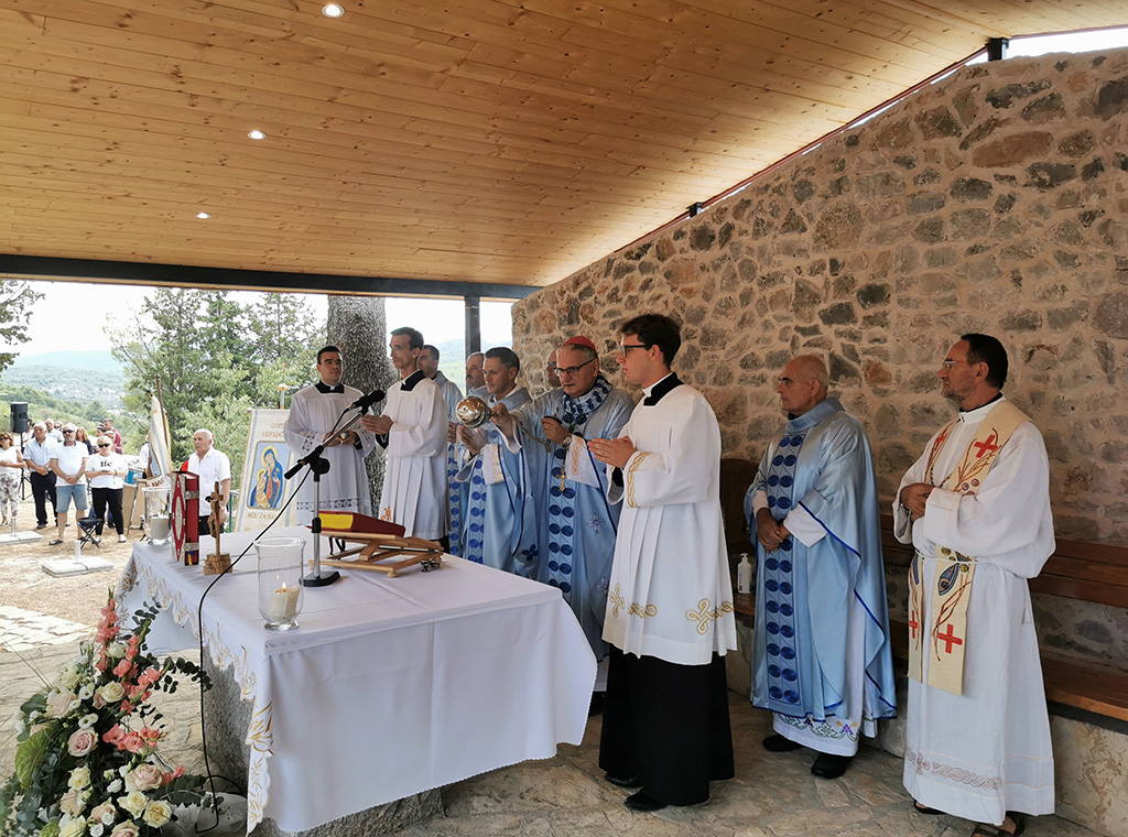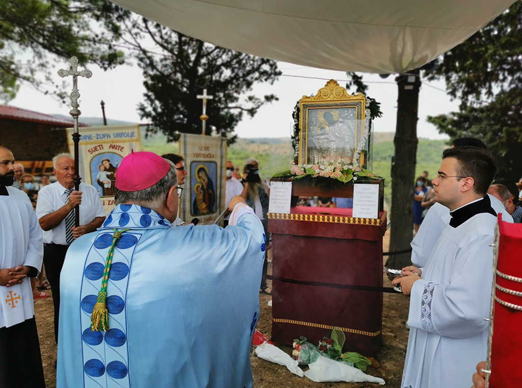 Uz poštivanje predviđenih mjera za suzbijanje pandemije "koronavirusa", u prastarom marijanskom svetištu Gospe Vrpoljačke u Šibenskoj biskupiji, proslavljena je svetkovina Uznesenja Blažene Djevice Marija.