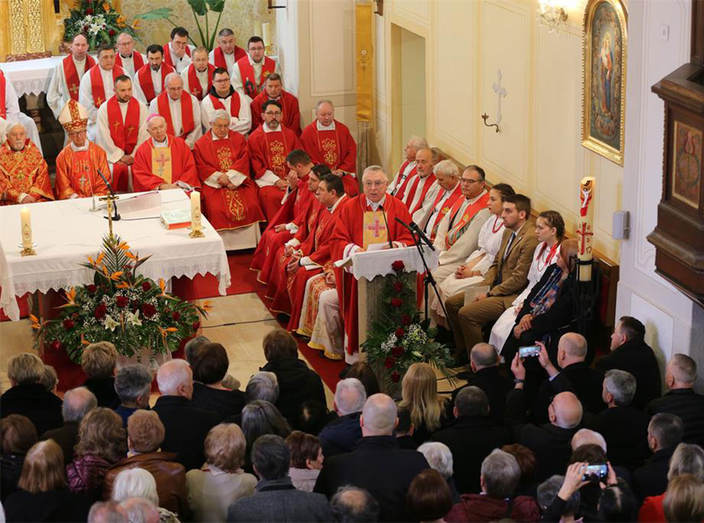 Svečano misno slavlje predvodio je porečki i pulski biskup u miru mons. Ivan Milovan u koncelebraciji s vladikom križevačkim u miru mons. Nikolom Kekićem, vojnim biskupom u miru mons. Jurjem Jezerincem, postulatorom kauze Bl. Alojzija Stepinca mons. Jurjom Bateljom i brojnim svećenicima.