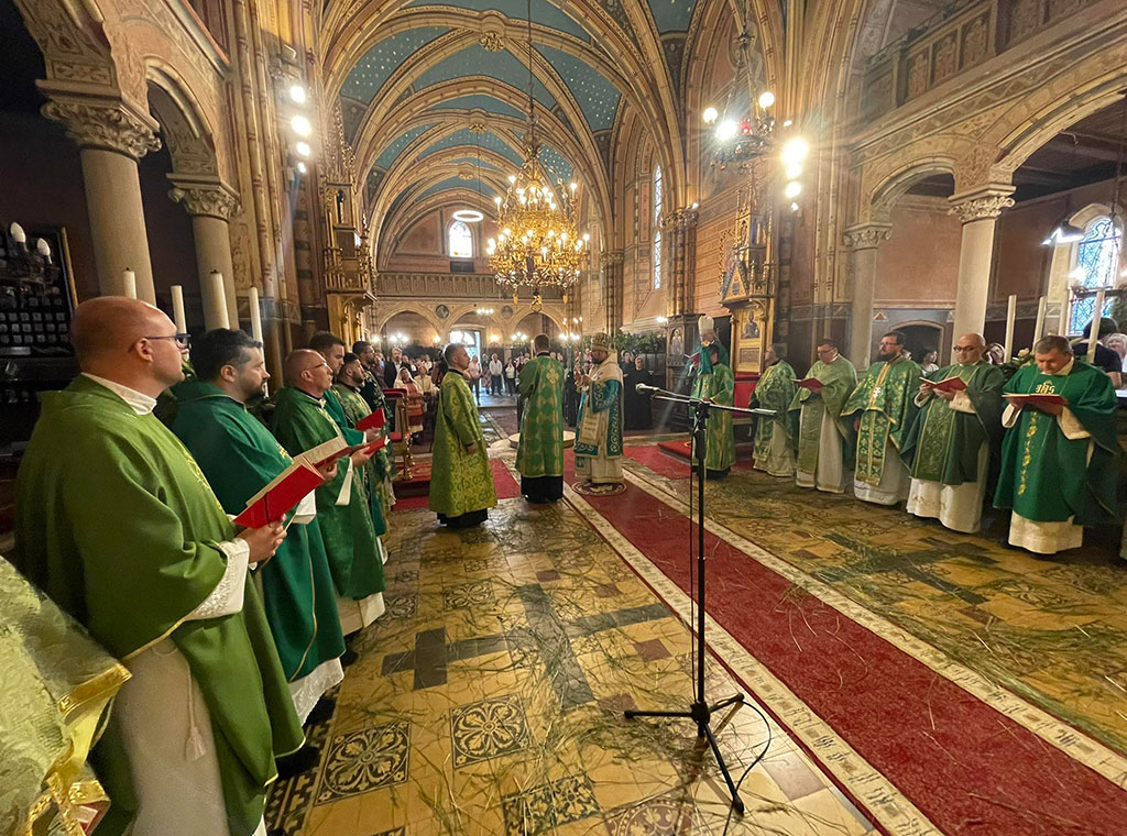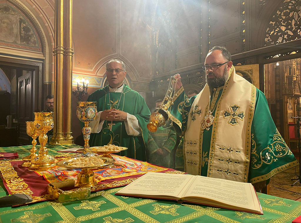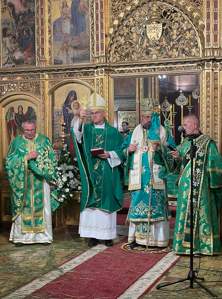 Arhijerejsku liturgiju Sv. Ivana Zlatoustoga služio je križevački biskup vladika Milan Stipić zajedno s biskupom porečkim i pulskim mons. Ivanom Štironjom, koji je uputio prigodnu homiliju, te s brojnim grkokatoličkim i rimokatoličkim svećenicima, uz sudjelovanje đakona, bogoslova i brojnih vjernika.