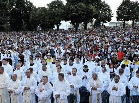 Koncelebrirali su biskup Antun Škvorčević, srijemski biskup mons. Đuro Gašparović te brojni svećenici, a nazočilo je oko 35 000 vjernika
