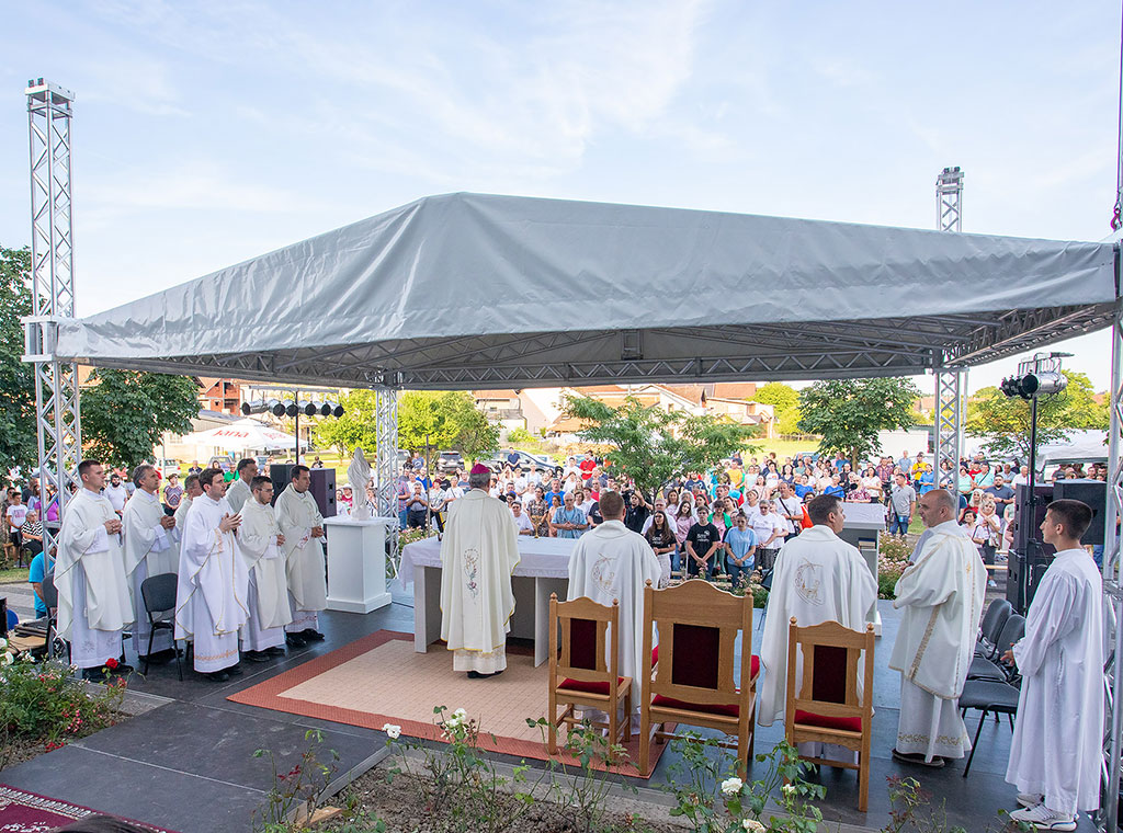 Misno slavlje, kao središnji dio prvog dana Mladifesta, predvodio je sisački biskup mons. Vlado Košić. U propovijedi je biskup rekao kako je naš Bog, Bog čudesa o čemu svjedoči i prvo čitanje iz Knjige postanka kada je Bog Abrahamu koji je imao 99 godina i ženi mu Sari od 90 godina obećao potomstvo.