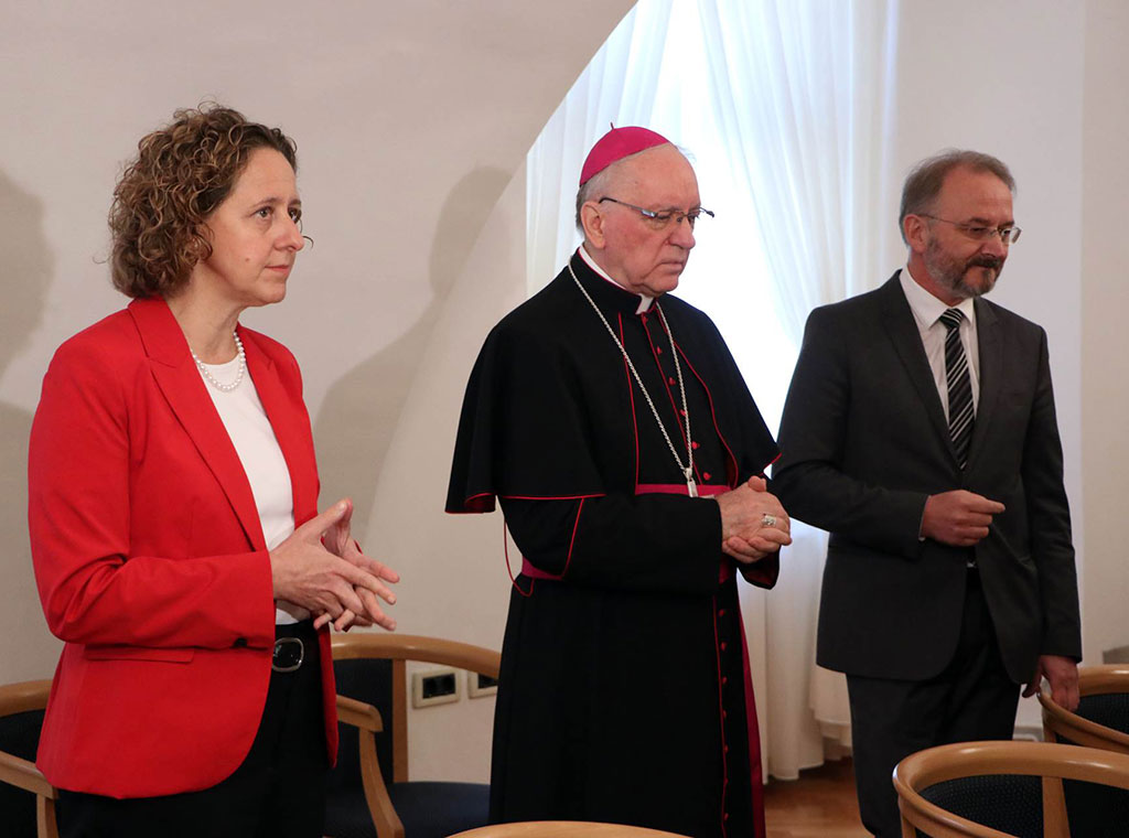 U prigodnoj riječi mons. Škvorčević podsjetio je kako je u vrijeme komunističke vladavine Crkvi oduzet određeni broj matičnih i drugih knjiga te da je pedeset godina nakon toga, 1996. godine potpisan Ugovor između Svete Stolice i Republike Hrvatske o suradnji na području odgoja i kulture, kojim su dvije strane utvrdile da su one vlasništvo Crkve i da će biti vraćene pojedinim biskupijama na čijem se području nalaze župe i druge pravne osobe čiji su one vlasnici. Istaknuo je kako je u tom smislu 2005. potpisan i Sporazum o provedbi povrata s naznačenom procedurom prema kojoj treba postupiti i da ju je Požeška biskupija već sljedeće godine ispunila. Biskup je spomenuo kako je 2020. vraćeno 241 knjiga koje su bile u Matičnim uredima pod nadležnošću Ministarstva pravosuđa i uprave, a danas se vraća 651 knjiga iz državnih arhiva pod nadležnošću Ministarstva kulture i medija, te ukupan broj vraćenih knjiga Požeškoj biskupiji iznosi 892. Kazao je da je to učinjeno po prastarom latinskom pravnom i moralnom načelu res clamat ad dominum – stvar doziva (traži) vlasnika, a ostvareno po duhovnom načelu Sv. Terezije Avilske da se sve postiže strpljivošću“. Zahvalio je ministrici i njezinim suradnicima na trudu koji su uložili u pripravi povrata spomenutih knjiga, napose djelatnicima državnih arhiva. Spomenuo je još kako se očekuje da biskupije uz povrat matičnih knjiga, prime i njihov digitalni snimak, kako to određuje Sporazum i da se zajedničkim nastojanjem obnove knjige koje su u lošem stanju, izvijestili su na mrežnoj stranici Požeške biskupije.