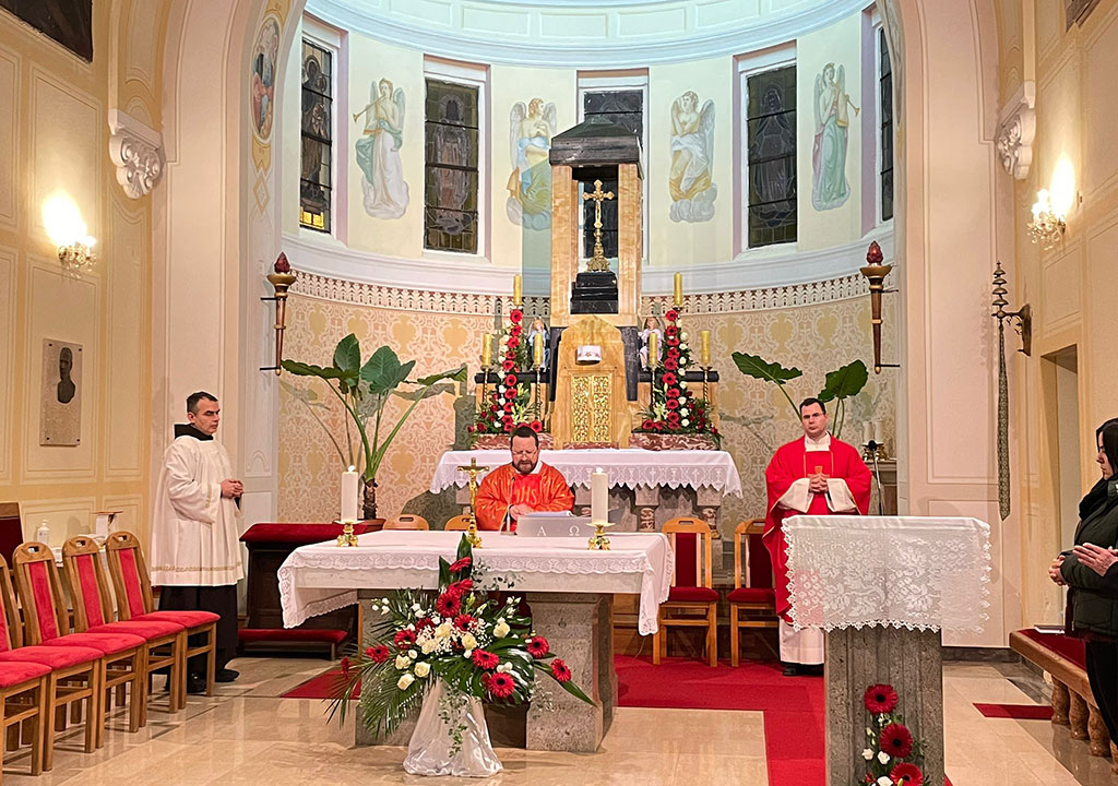 Na početku homilije, fra Branko upoznao je okupljene vjernike s činjenicom da je upravo kardinal Stepinac 1942. osnovao župu iz koje on dolazi – Svetoga arkanđela Mihaela u zagrebačkoj Dubravi, odnosno o poveznici hrvatskoga blaženika i crkve u Kapucinskoj ulici u Zagrebu.