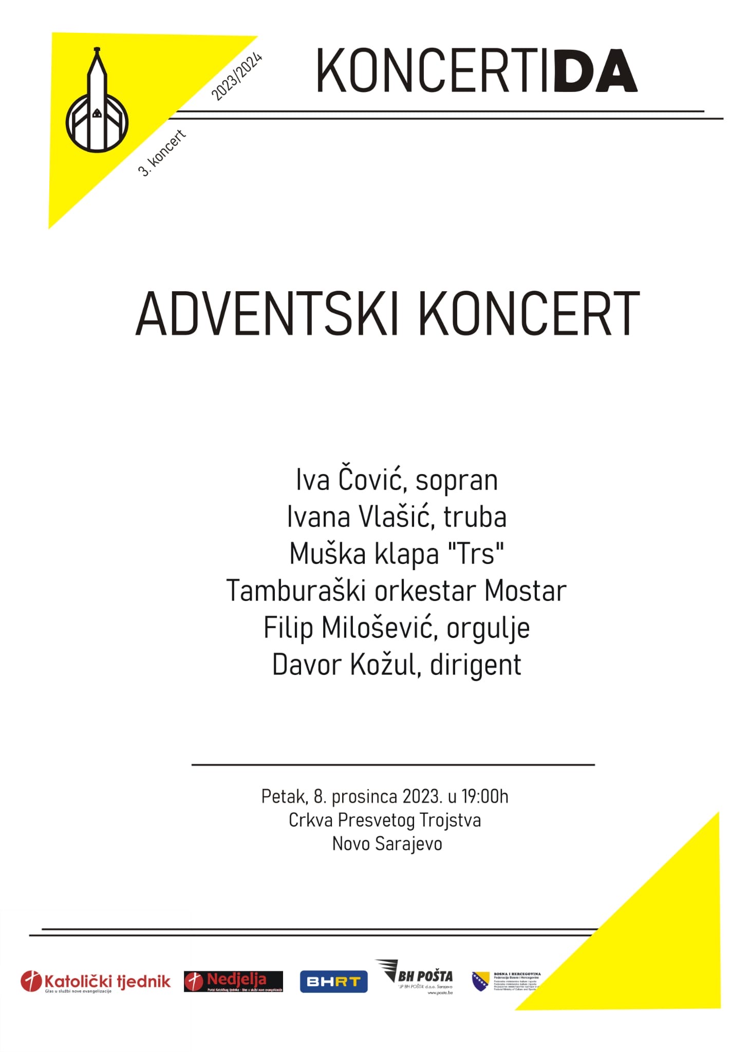 Župa Presvetog Trojstva u Novom Sarajevu u petak, 8. prosinca s početkom u 19:00 sati u sklopu drugog ciklusa „KoncertiDA“ organizira „Adventski koncert“.