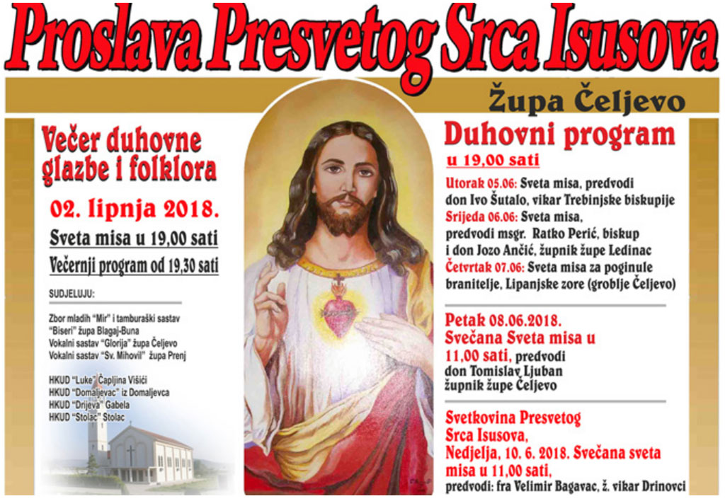 Župa Čeljevo kod Čapljine obilježit će i ove godine brojnim događajima proslavu Presvetog Srca Isusova, svojeg nebeskog zaštitnika.