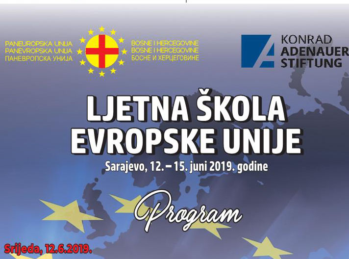 Paneuropska unija Bosne i Hercegovine u partnerstvu sa Fondacijom «Konrad Adenauer» odlučila je pokrenuti «Ljetnu školu Europske unije» koja će se održavati od 12. do 15. lipnja u hotelu «Saraj» u Sarajevu.