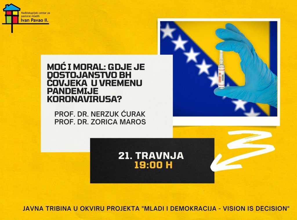 Tema susreta je Moć i moral: Gdje je dostojanstvo bosanskohercegovačkog čovjeka u vremenu pandemije koronavirusa. Gosti predavači su prof. dr. Zorica Maros (Katolički bogoslovni fakultet) i prof. dr. Nerzuk Ćurak (Fakultet političkih nauka).