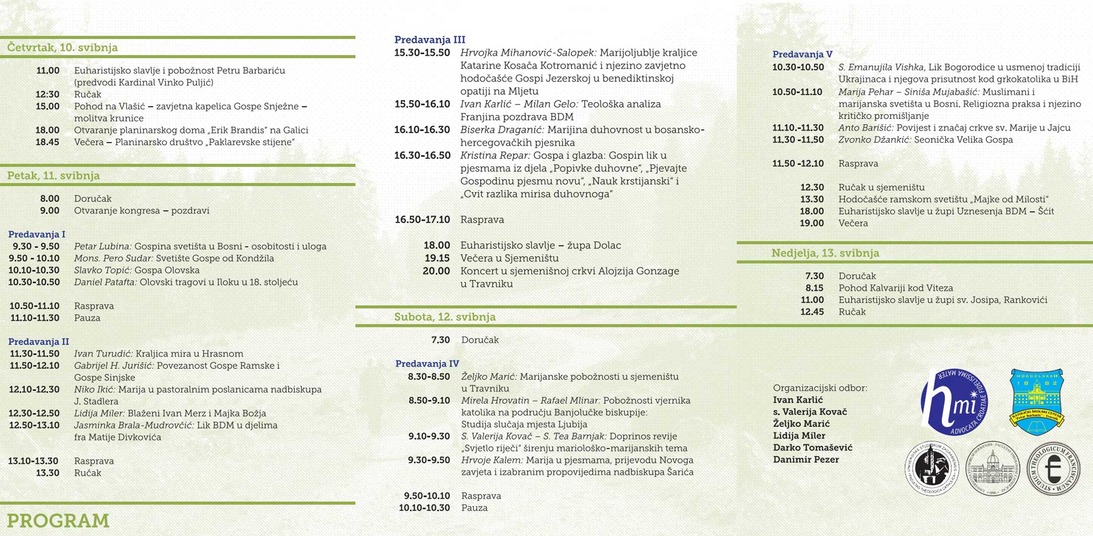 Kongres organizira: Hrvatski mariološki institut Katoličkoga bogoslovnog fakulteta Sveučilišta u Zagrebu u suorganizaciji Katoličkog bogoslovnog fakulteta Univerziteta u Sarajevu, Franjevačke teologije Sarajevo i Katoličkog školskog centra Petar Barbarić u Travniku.