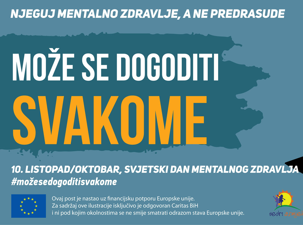 Zahvaljujući potpori Europske unije, Caritas BiH s partnerskim organizacijama u okviru projekta "SOCIETIES 2" realizira kampanju pod nazivom "Može se dogoditi svakome" koja ima za cilj podići svijest javnosti o značaju mentalnog zdravlja.