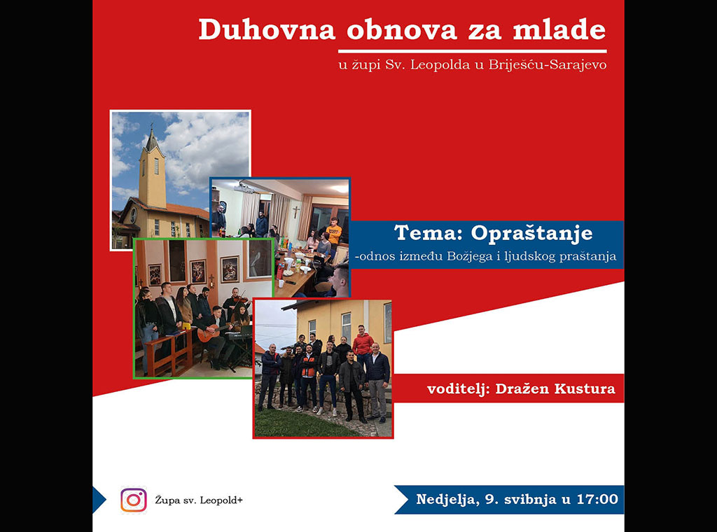 U sklopu proslave patrona, u nedjelju, 9. svibnja u 17:00 sati u župi Briješće bit će održana i duhovna obnova za mlade koju će voditi vlč. Kustura.
