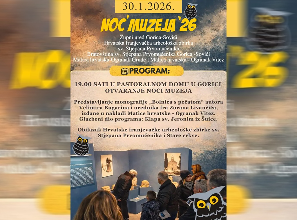 Hrvatska franjevačka arheološka zbirka „Sv. Stjepan Prvomučenik“ Gorica, Župni ured Gorica – Sovići, Bratovština Sv. Stjepana Prvomučenika Gorica – Sovići i Matica hrvatska – Ogranak Grude organiziraju „Noć muzeja“ 2026. u Gorici.