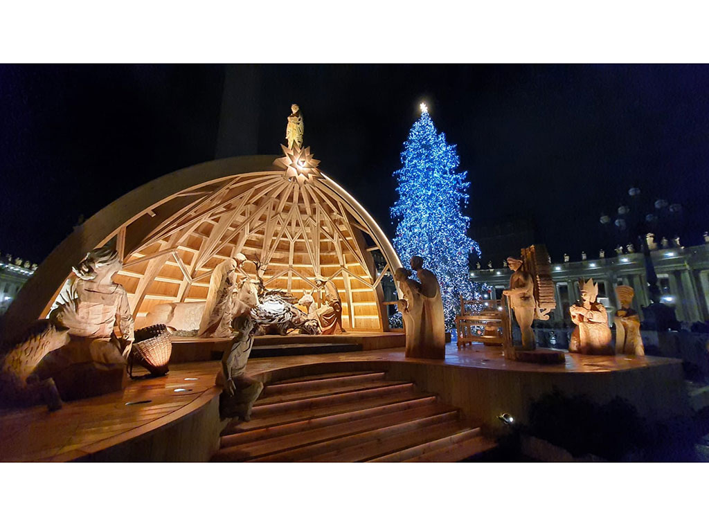 Uz svečano paljenje lampica, 7. prosinca će se istodobno otkriti i božićne jaslice za hodočasnike i posjetitelje. Jaslice su izradili volonteri s otoka Grada blizu Trsta. Simboliziraju podneblje Tršćanskog zaljeva i život ribara duboko povezanih s otočkom tradicijom. Te posebne jaslice ove će godine dati božićnom ugođaju na Trgu Svetog Petra regionalnu i pomorsku dimenziju, stavljanjem naglaska na jedinstvene kulturološke elemente Grada, objavio je Vatican News.