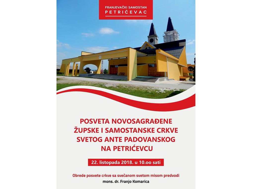 U ponedjeljak, 22. listopada bit će upriličena svečana posveta novosagrađene župne i samostanske crkve Sv. Ante na banjolučkom Petrićevcu.