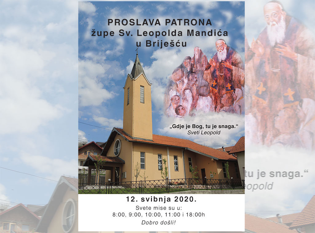 Župa Sv. Leopolda Mandića u sarajevskom naselju Briješće, u utorak 12. svibnja, proslavlja svoj patron. Toga dana, zbog aktualne situacije, bit će slavljeno pet svetih misa.