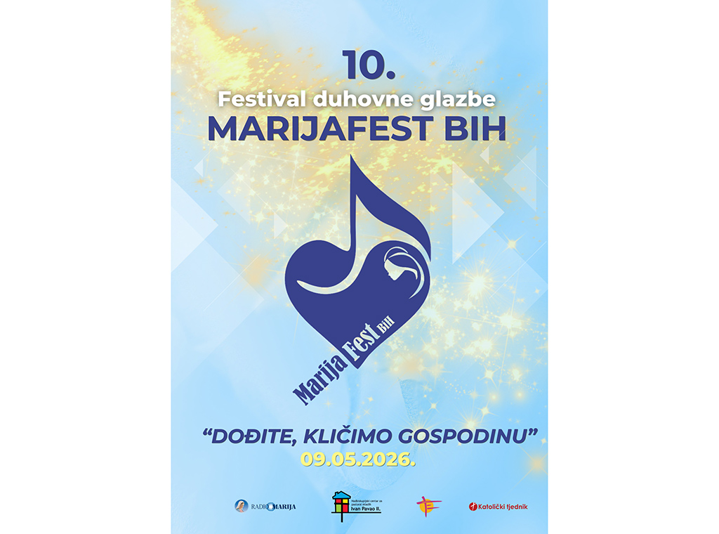 Nadbiskupijski centar za pastoral mladih „Ivan Pavao II.“ u suradnji s Udrugom katoličkih studenata „Emaus“ s radošću upućuje poziv dječjim zborovima, zborovima mladih i župnim bendovima za sudjelovanje na 10. jubilarnom „MarijaFestu BiH“ koji će se održati 9. svibnja u Sarajevu.