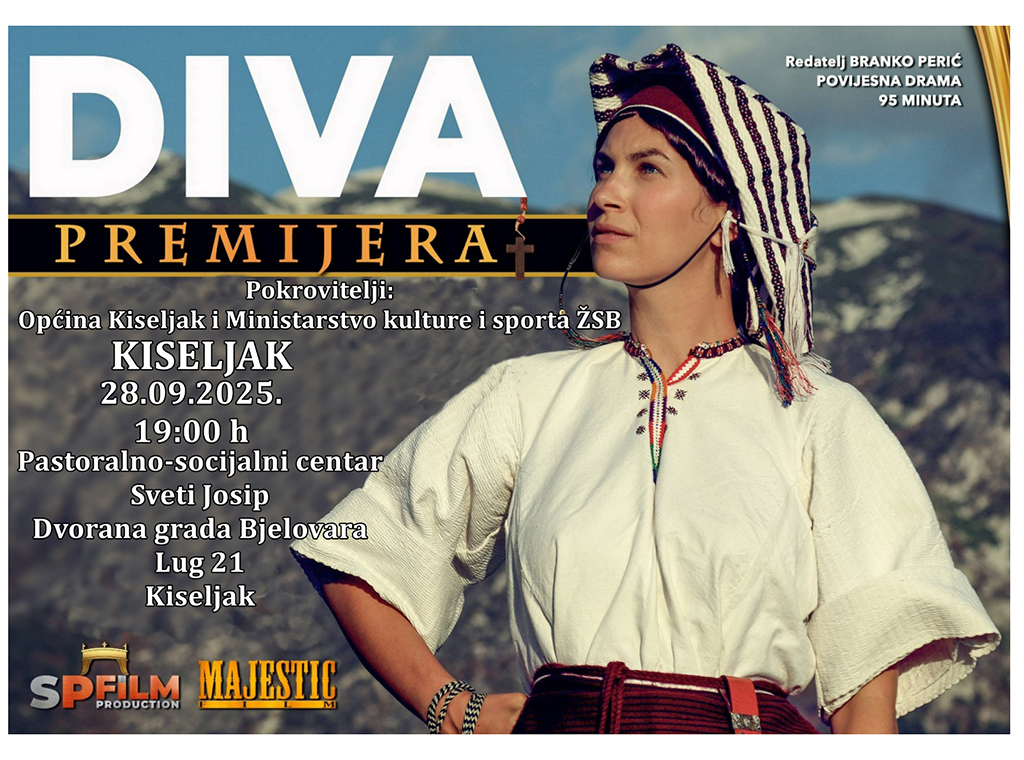 U Pastoralno-socijalnom centru „Sv. Josip“ u Lugu pokraj Kiseljaka, i nedjelju 28. rujna u 19:00 h bit će upriličena premijera povijesne drame „Diva“ redatelja Branka Perića.