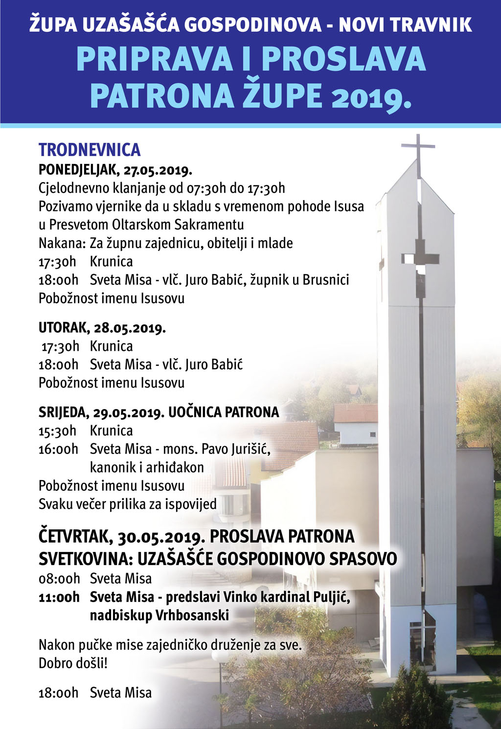 Župa Uzašašće Gospodinovo Novi Travnik organizira od 27. do 29. svibnja pripravu za proslavu svoga patrona.