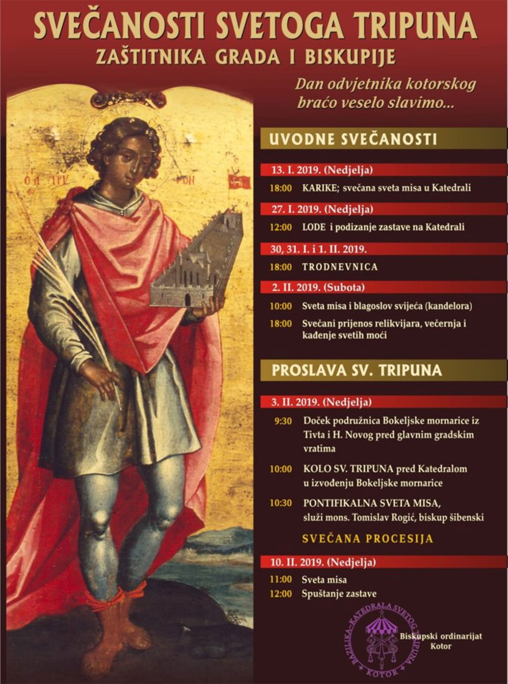 „Sve vjernike, štovatelje Sv. Tripuna s radošću očekujemo na ovogodišnjim svečanostima u čast Odvjetnika kotorskog“, priopćeno je iz Kotorske biskupije.