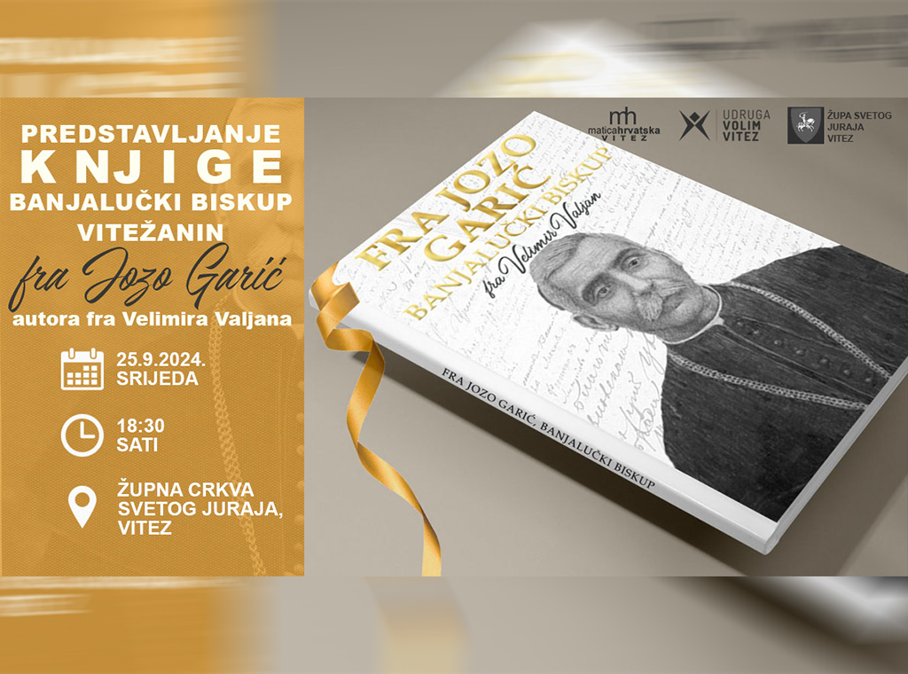 U srijedu, 25. rujna, u 18:30 h, u župnoj crkvi Sv. Juraja u Vitezu bit će upriličeno predstavljanje knjige „„Fra Jozo Garić, banjolučki biskup“ autora fra Velimira Valjana.