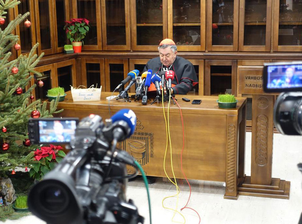 Tradicionalno snimanje božićne čestitke i konferencija za medije nadbiskupa metropolita vrhbosanskog Vinka kard. Puljića bit će upriličena u srijedu, 23. prosinca u 11 sati u prostorijama Nadbiskupske rezidencije u Sarajevu.