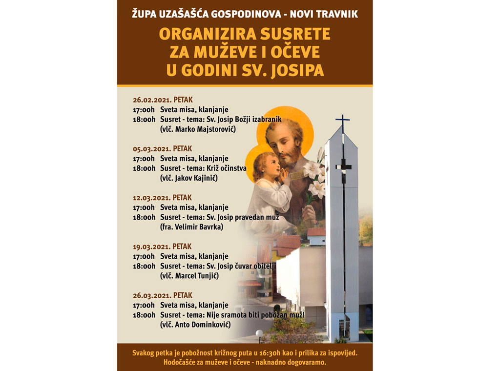 Župa Uzašašća Gospodinova u Novom Travniku u Godini Sv. Josipa organizira susrete za muževe i očeve tijekom pet korizmenih petaka.
