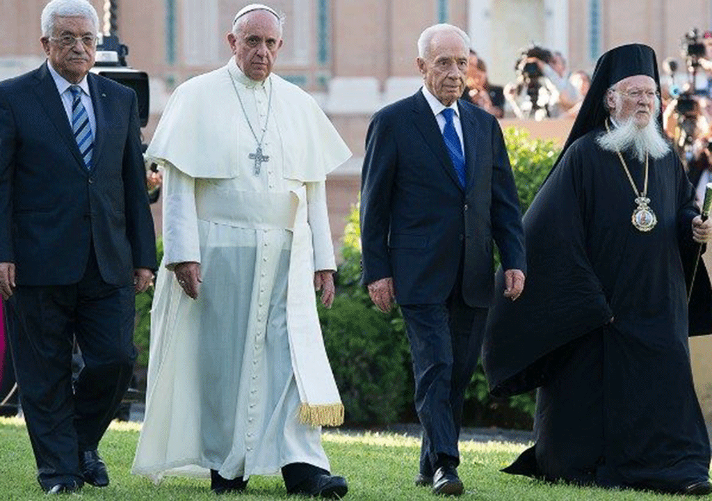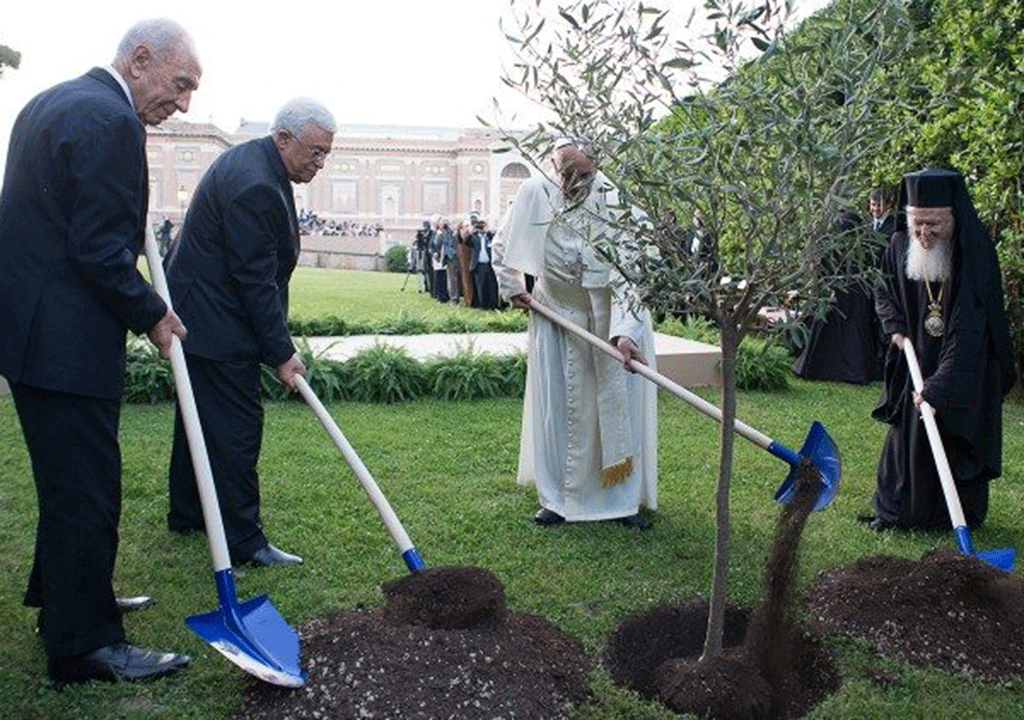 Papa Franjo će u subotu, 8. lipnja ujutro otići u Vatikanske vrtove kako bi obilježio događaj koji mnogi pamte kao jednu od najznačajnijih mirovnih gesta njegova pontifikata, odnosno susret s pokojnim izraelskim predsjednikom Shimonom Peresom i Mahmoudom Abbasom, predsjednikom Države Palestine, na kojemu su zajednički zazvali mir za Bliski istok. Na događaju, održanom nakon Papina putovanja u Jeruzalem, bili su nazočni također patrijarh Bartolomej I. i predstavnici kršćana, Židova i muslimana iz Svete zemlje, koji su pratili međureligijsku molitvu i ceremoniju sadnje maslinova stabla.