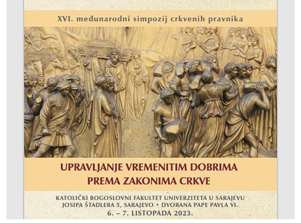 U dvorani "Pavla VI." na Katoličkom bogoslovnom fakultetu u Sarajevu, 6. i 7. listopada bit će upriličen XVI. međunarodni znanstveni simpozij crkvenih pravnika na temu "Upravljanje vremenitim dobrima prema zakonima Crkve".