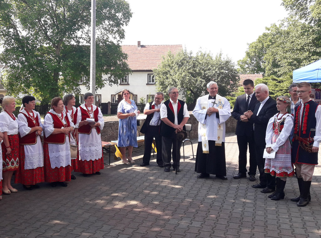 Župljani te župe su uglavnom potomci vjernika župe Gumjera s desne strane donjeg toka Vrbasa u banjolučkoj biskupiji. Oni su, kao i još mnogo tisuća poljskih katolika iz šest poljskih župa prnjavorskog dekanata 1946. na temelju međunarodnog ugovora napustili to područje i naselili se na područje dotadašnje Donje Šlezije.