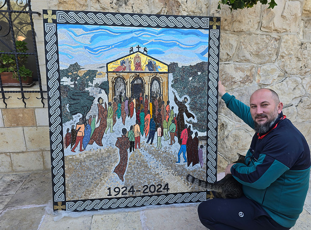 „To činimo sada i nadovezujemo se na 1100. obljetnicu Hrvatskoga kraljevstva i velikih crkvenih sabora. Tako je taj mozaik (154x198 cm) dar Getsemanskom vrtu, ali i čast hrvatskom narodu. On nas vraća u 1691. kada su trojica Hrvata iz Bosne, točnije Sarajeva – Pavao, Antun i Jakov Branković – kupili Getsemanski vrt od muslimana i darovali ga franjevcima. Mozaik prikazuje samu crkvu Muke Gospodnje, narod koji hodočasnički ulazi u tu nju, franjevce koji su čuvari tog svetog mjesta, Getsemanskog vrta, a sve je stavljeno u okvir hrvatskog pletera, zajedno sa stiliziranim križevima pletera. Oni govore da je nama kao narodu jako stalo do Getsemanskog vrta, da ga podupiremo, održavamo i doprinosimo“, kazao je fra Tomislav podsjetivši još jedno kako je riječ o radu Ilije Skočibušića u izvedbi Centra za mozaike u Jerihonu.
