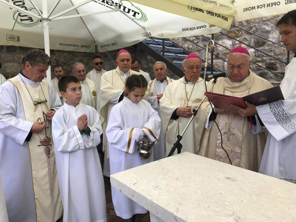 Na početku mise nazočne je pozdravio mjesni nadbiskup ističući veliku radost svih zbog ovog izvanrednog događaja koji ih potiče da otvore srca Bogu i budu žive stijene u Crkvi Božjoj. Potaknuo je sve okupljene da promatrajući ruševine Starog grada Bara usmjere svoj pogled k nebu, ali ne da bi pobjegli od svojih ovozemaljskih odgovornosti, nego da bi upravo dobili svjetlost i snagu za vršenje obveza posebno dobrih, pravednih i humanih dijela u bratskom duhu. Zahvalio je svim sudionicima i svima koji su na bilo koji način doprinijeli obnovi ove živopisne crkvice i poželio da ona postane mjesto susreta zajednice koja dijeli i radosti, i boli, i nadu i brige.