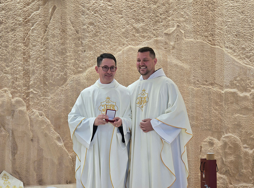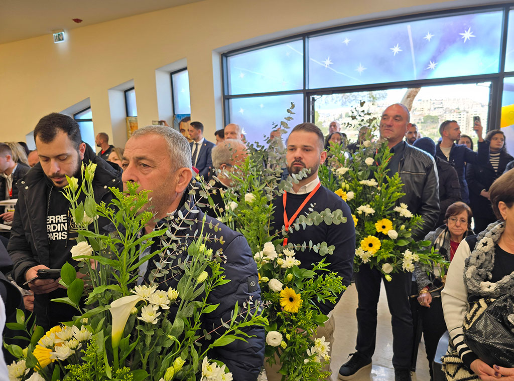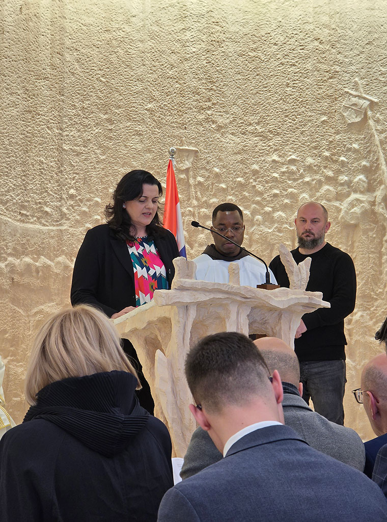 Prije početka mise nazočne su pozdravili fra Tomislav i ministar Grlić Radman, uputivši riječi zahvale zaslužnima za realizaciju ideje izgradnje hrvatske kapele na Pastirskim poljanama u području Beit Sahura.