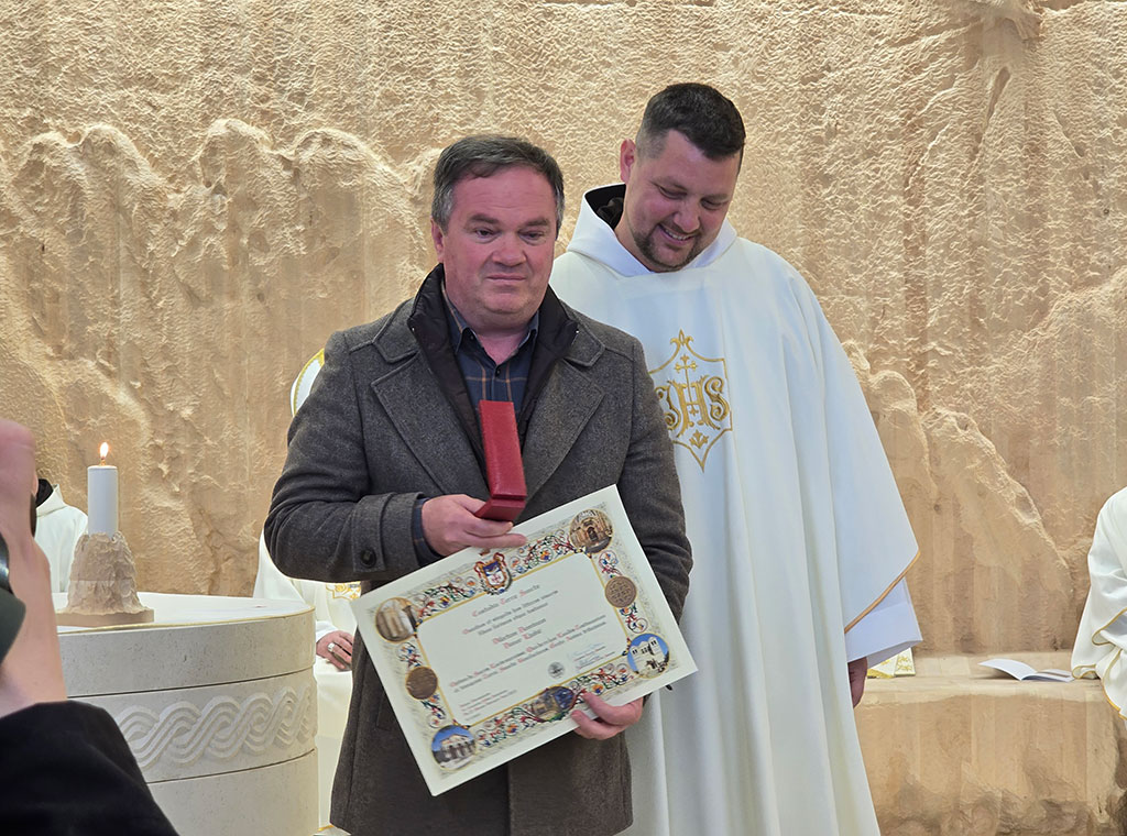 Na kraju misnoga slavlja nazočnima se obratio kustos Patton izričući riječi zahvale za potporu koju Hrvati pružaju kršćanima, na napose Katoličkoj Crkvi u Svetoj zemlji. U tom smislu prigodne darove uručio je: ministru Grlić Radmanu i saborskoj zastupnici Petir te vodiču fra Tomislavu Glavniku, direktoru tvrtke koja je organizirala hodočašće Davoru Ljubiću, fra Zlatku Vlaheku, kiparu Skočibušiću kao i nadbiskupima Tomi i emeriti Barišiću.