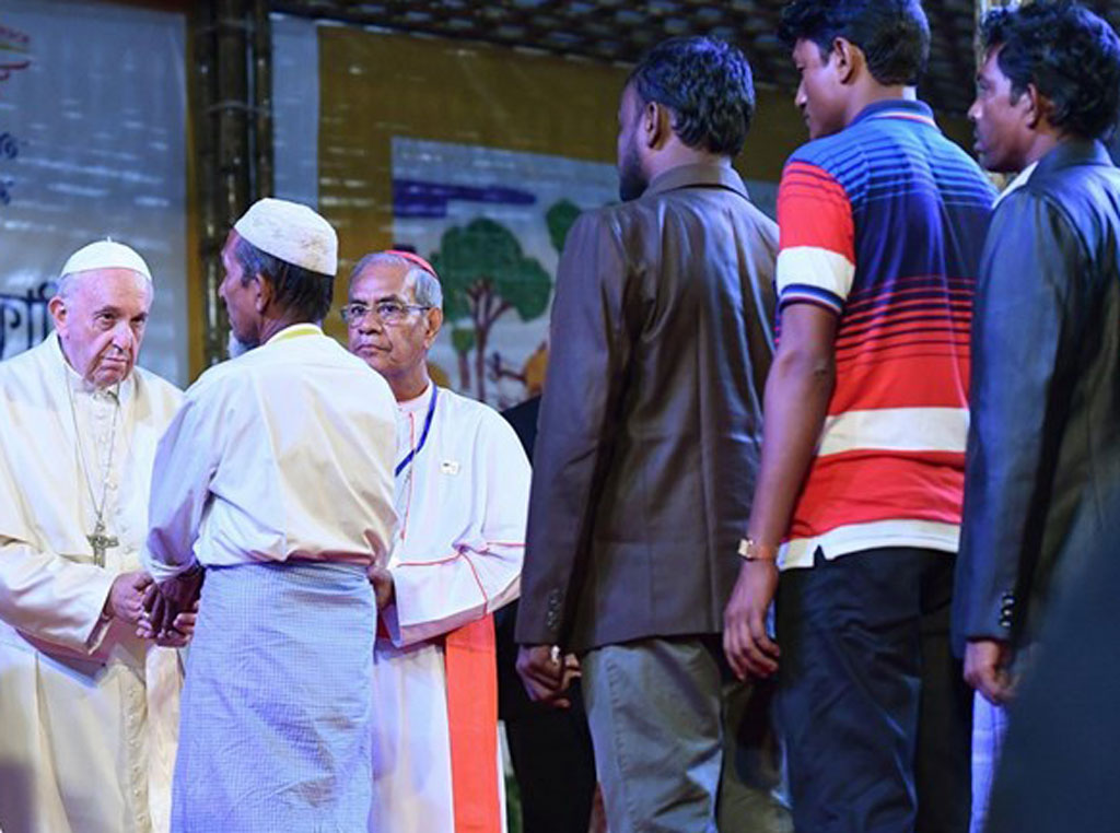 Obraćajući se narodu Rohingya, kako prenosi Vatikanski radio, Papa je istaknuo da je Gospodin stvorio čovjeka na svoju sliku i priliku te kako je njihova tragedija vrlo velika. „U ime svih onih koji vas progone, koji su učinili zlo, osobito zbog ravnodušnosti svijeta, molim vas za oproštenje. Svi smo mi ta slika, također i ova braća i sestre i oni su slika živoga Boga. Tradicija vaših religija kaže da je Bog na početku uzeo malo soli i bacio ju u vodu koja je bila duša svih ljudi; možemo reći, svatko od nas nosi u sebi malo božanske soli, a ova braća i sestre zaista unose božansku sol. Mnogi od vas našli su sklonište u Bangladešu. Zato apeliram: Nastavimo se brinuti za njih, pomagati im, zauzimati se da im budu priznata njihova prava. Ne zatvarajmo srca, ne odvraćajmo pogled. Božja prisutnost, danas, zove se također 'Rohingya'. Svaki od nas treba dati svoj odgovor“, zaključio je Sveti Otac.