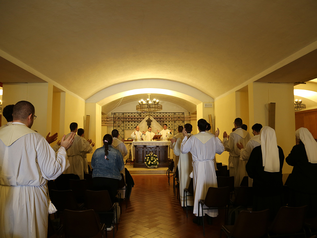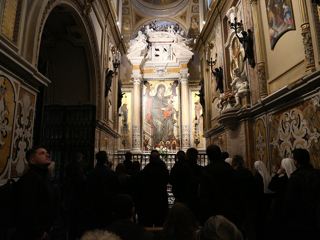 Euharistiju je slavio rektor Zavoda preč. Marko Đurin, a propovijedao duhovnik o. Alan Modrić. Nakon svete mise pod stručnim su vodstvom razgledali baziliku u kojoj se nalazi velika oltarna Gospina slika (ikona) iz 14. stoljeća poznata pod nazivom Madonna di Montevergine ili Mamma Schiavona.