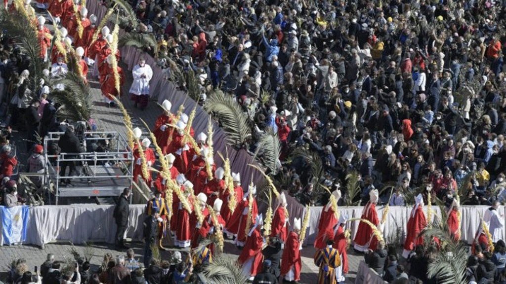 Papa Franjo je na Cvjetnicu – Nedjelju Muke Gospodnje 10. travnja slavio misu s vjernicima na Trgu Svetog Petra, rekavši u homiliji da je Krist ponovno razapet u ludosti rata, ponovno je prikovan na križ u majkama koje plaču nad smrću svojih muževa i djece.